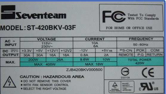 Veja que nesta fonte de computador da imagem acima, temos especificado que a potência máxima suportada é de 405 Watts.